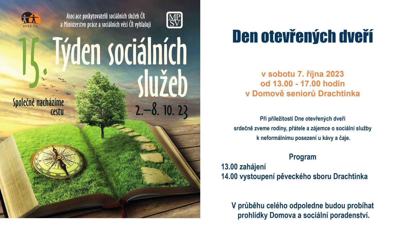 V sobotu 7. října 2023 se v Domově seniorů Drachtinka otevřou dveře veřejnosti. V zařízení se od 13:00 hodin bude konat Den otevřených dveří v rámci Týdne sociálních služeb. Konec akce je naplánovaný v 17:00 hodin, návštěvníci se mohou těšit na pestrý program.
