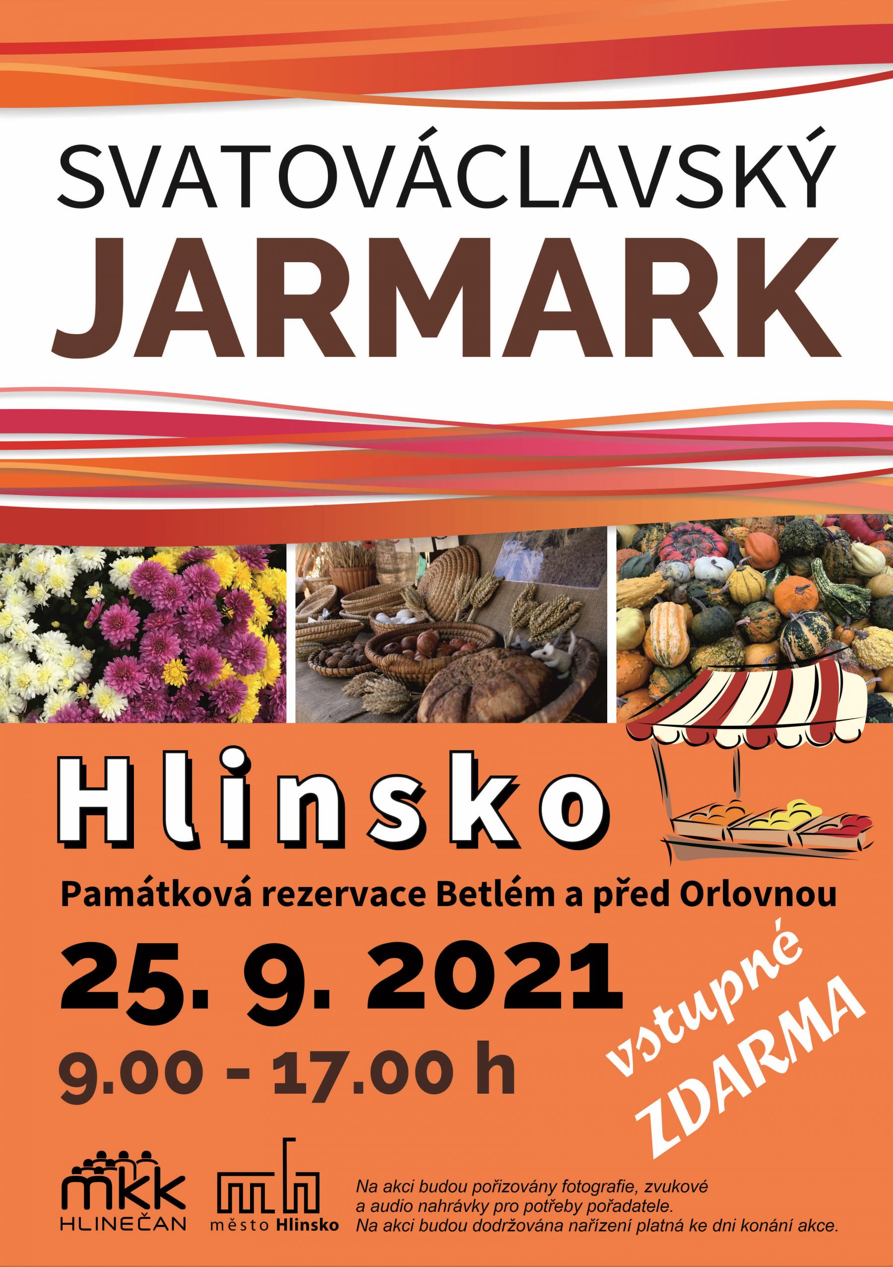 Tradiční Svatováclavský jarmark se uskuteční již tuto sobotu 25. září. Akce bude probíhat od 9:00 do 17:00 hodin v areálu rezervace Betlém a na nábřeží před Orlovnou. Jedná se o jeden z největších hlineckých jarmarků, přihlášeno je více než 60 prodejců občerstvení, květin, ručně vyráběných šperků, dekorací a dalšího sortimentu.