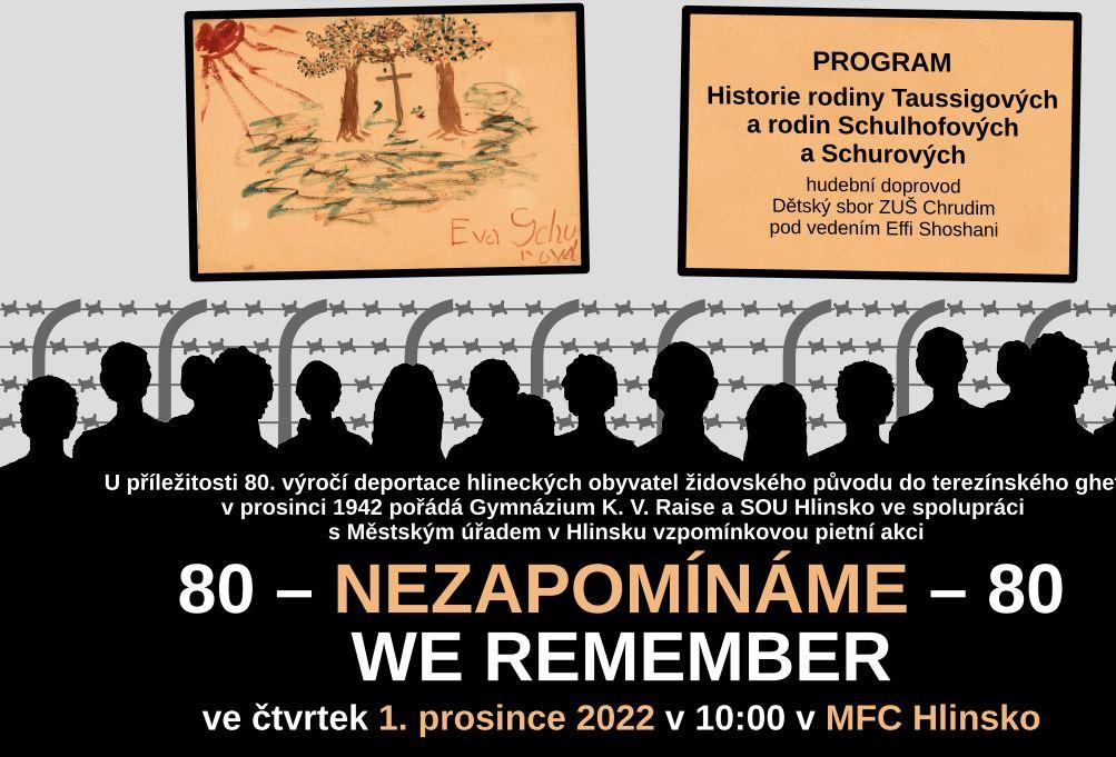 Gymnázium K. V. Raise a SOU Hlinsko pořádá spolu s Městským úřadem Hlinsko vzpomínkovou pietní akci Nezapomínáme - We Remember. Ta se uskuteční v Multifunkčním centru ve čtvrtek 1. prosince od 10:00 hodin.