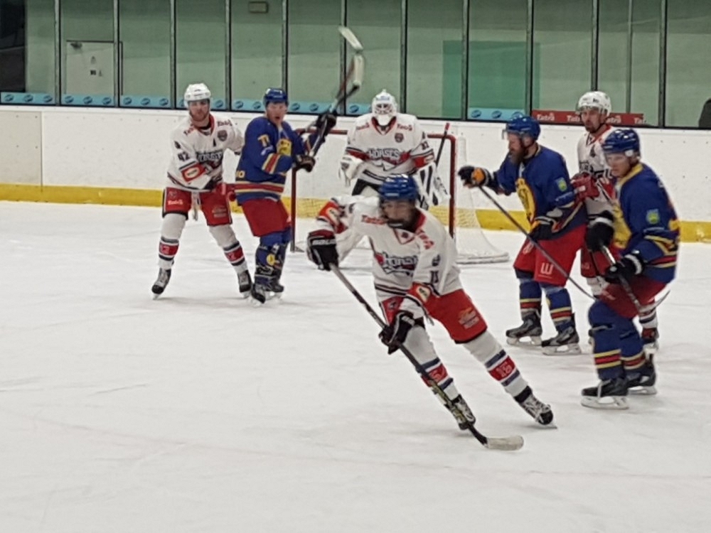 V druhé třetině domácí značně polevili v bruslení a tempu a tak ve 24. minutě snížil Mlateček, když snad natřikrát dotlačil kotouč za brankovou čáru 3:1. Branka hosty nabudila, P. Sodomka následně čelil hned dvěma nebezpečným střelám. Ve 30. minutě hosté snížili na 3:2 opět po brance Mlatečka. Domácí však rychle přidali na důrazu a svůj hattrick dokončil T. Bříza 4:2. Při oslabení se podařila pěkná akce T. Hudcovi, který vyhrál bruslařský souboj na zadním mantinelu, obkroužil branku a překvapivou střelou mezi betony zvýšil na 5:2. Přesilovou hru využil D. Homola a zvýšil na 6:2 dvě minuty před koncem druhé třetiny.