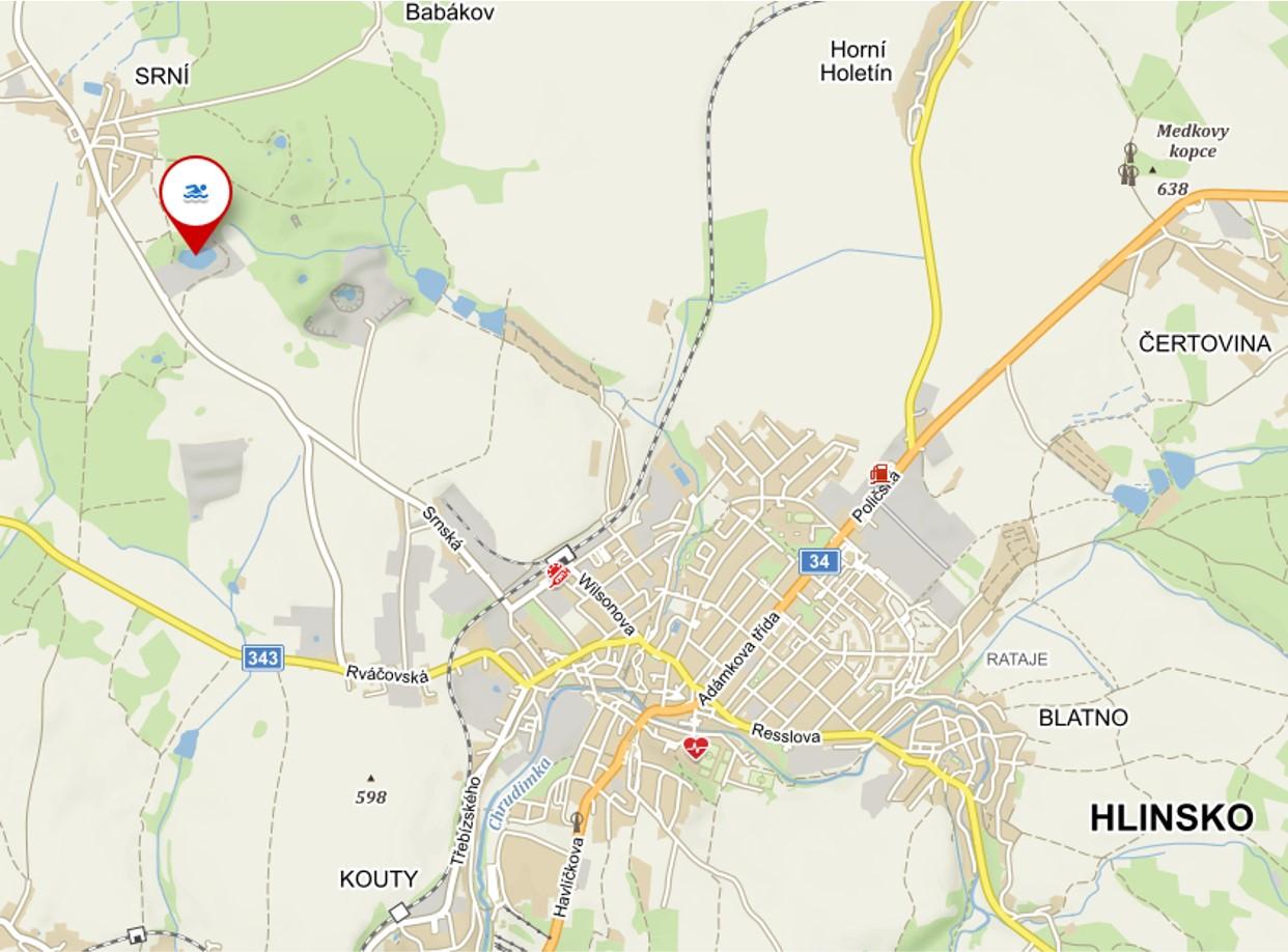 Nedaleko od Hlinska, před obcí Srní, se nachází zatopený lom, kde v dobách první republiky probíhala těžba hlinecké žuly. Ukončena byla v 60. letech 20. století a poté došlo k postupnému zatopení lomu. Lom byl později navrácen původním majitelům, kteří se o něj starali vlastními prostředky. V létě byl využíván jako přírodní koupaliště.